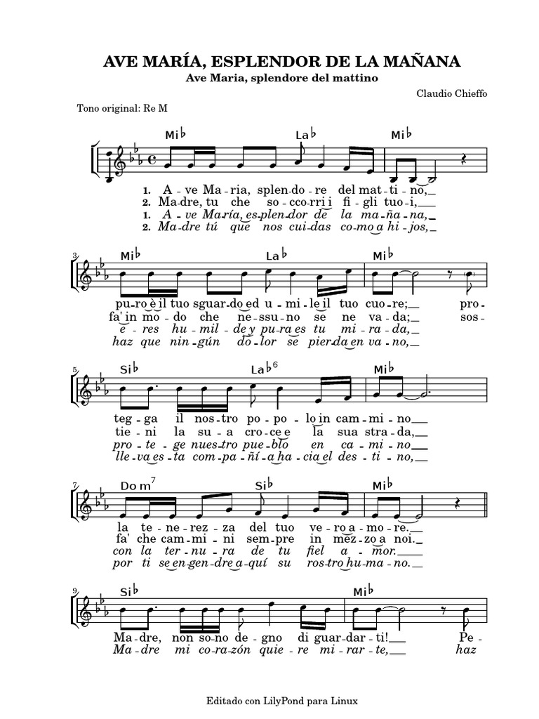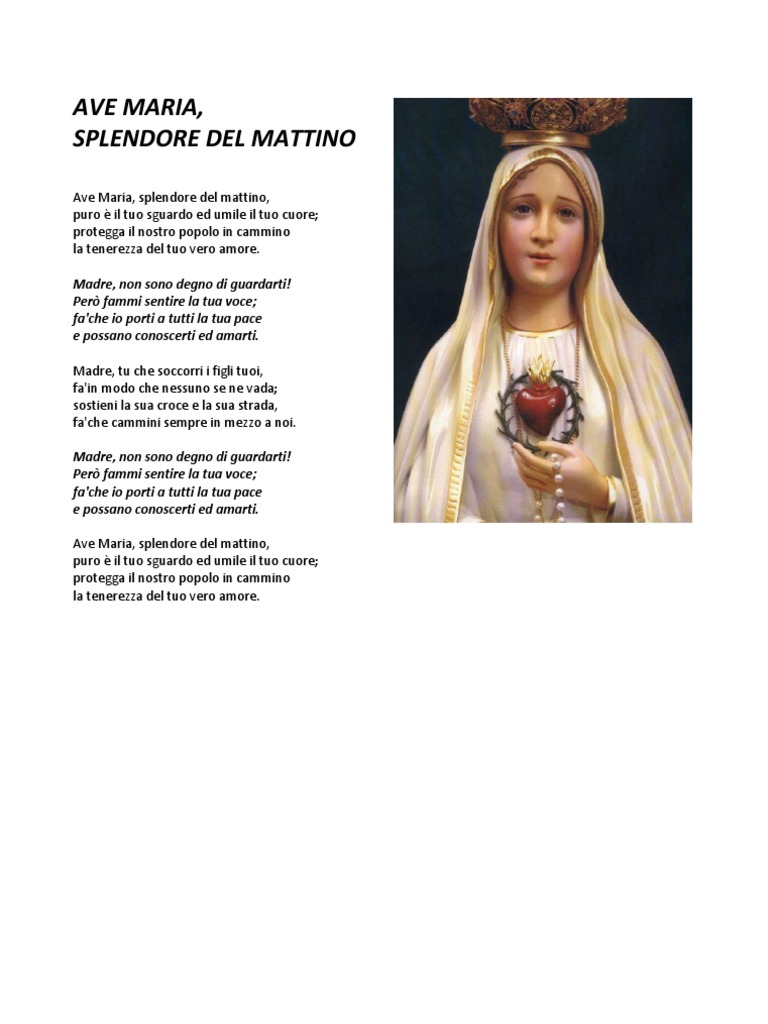 Ave Maria Splendore Del Mattino - Re sol re ave maria, splendore del mattino, sol re puro è il tuo sguardo ed umile il tuo cuore;