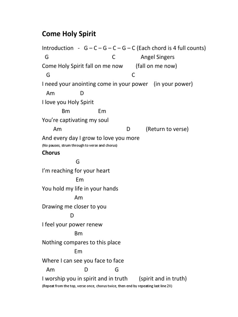 Come Holy Spirit Fall On Me Now 3gp Mp4 Hd Download Very good translation but we worship the lord ''in'' spirit and ''in'' truth not that we worship the holy spirit, the holy spirit helps us worship god the father and the lord jesus our god.