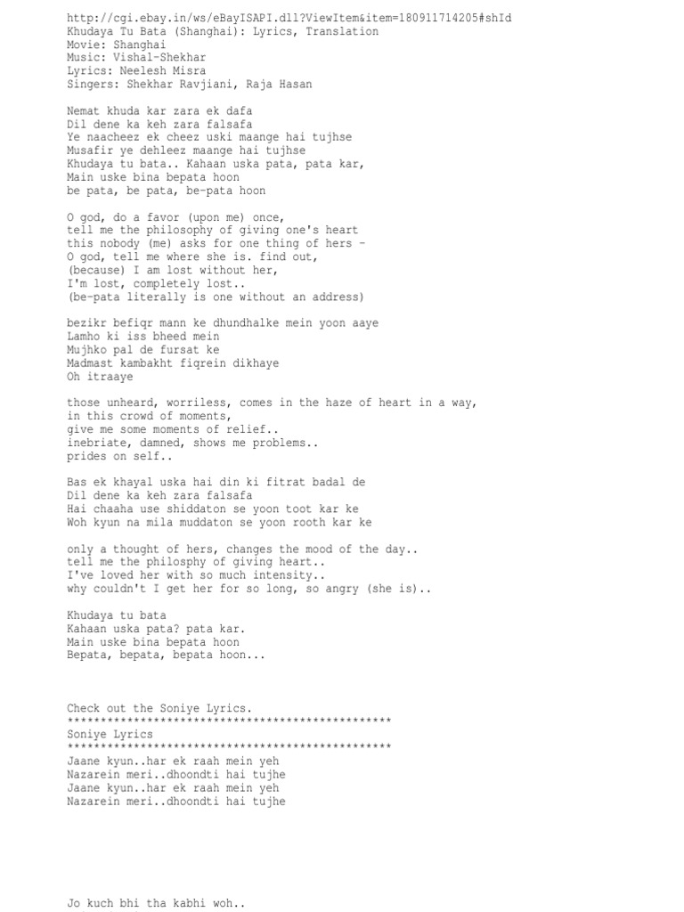 Tu Hi Hai Mujhko Bata De Lyrics - Tu hai jiske bina main jee na sakun.
