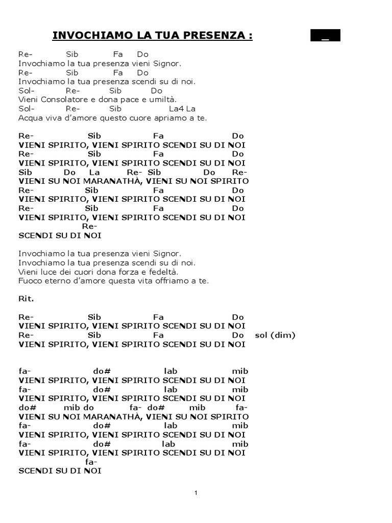 Vieni Spirito Testo : Vieni santo spirito apri link.